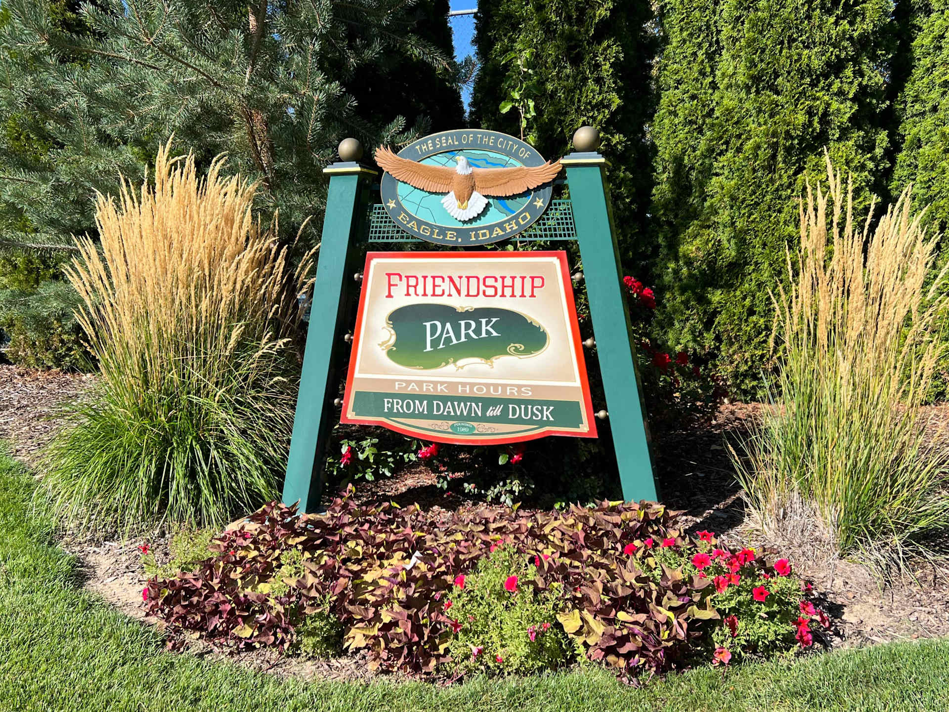 Friendship Park is a treasured gem in the Eagle community and popular with families and older children. It is perfect for soaking in the sunshine with sheltered picnic tables, a grill, and a large grassy space. The park features two lighted tennis courts and is additionally marked for pickleball. There is an advanced playground with equipment designed for older children and an arch climber area where kids can take their play to the sky.